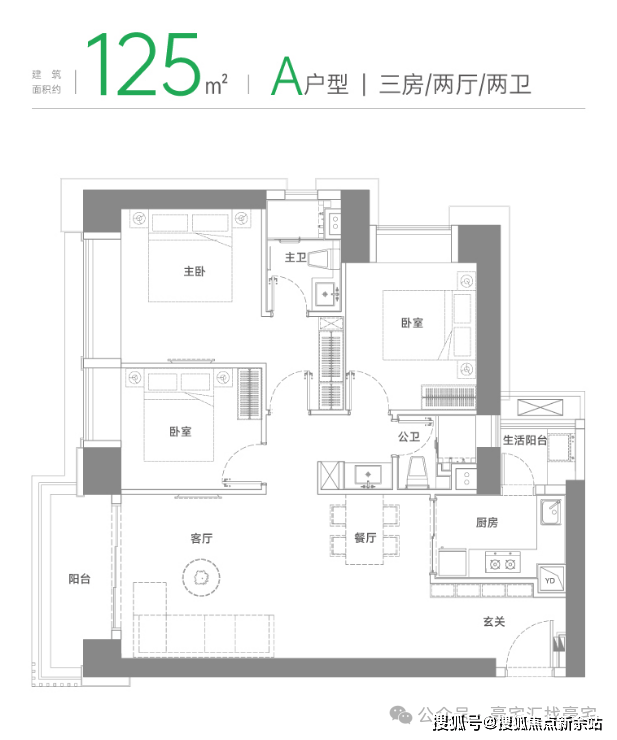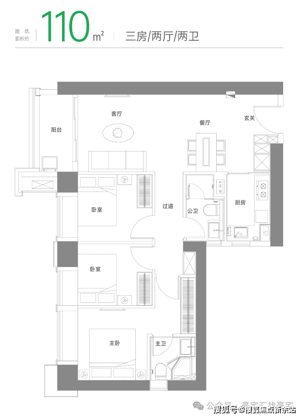 瞰景三房,飘窗、阳台拉开居住视野,主卧私享功能产备