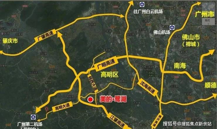 项目位于广佛肇腹地,江肇高速、高明大道、杨西大道三线合围的辖区内。项目离江肇高速人和收费站出口2公里,离广明高速明城收费站出口8公里。项目有多条区内公交线路(501、502、504、506),公共交通便利。