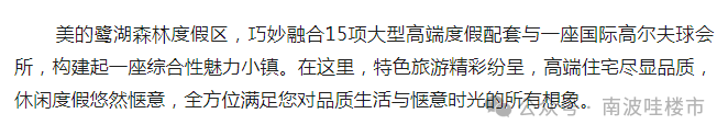 ☎美的鹭湖森林度假区(售楼处认证)电话:400-818-3129提前预约看房尊享额外优惠!💬