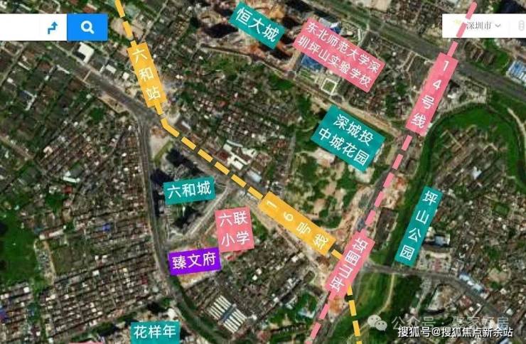 臻文府位于坪山中心区六和城旁边,东纵路与迎春路交汇处,项目北侧紧挨着一期六和城,东侧是六联小学,南侧是坪山综合批发市场,西南侧是花样年好时光,目前项目周边有大片城中村,不过基本都已经纳入城市更新范围,面貌日新月异。14/16号地铁线“坪山围站”F出口距离约270米。