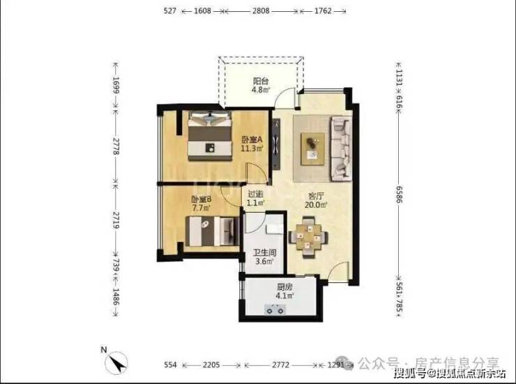 太古城南区62㎡的户型实际套内实用面积在51㎡左右,精致的小两房设计。