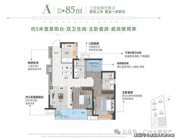 85㎡ 3房2厅2卫,南向3房带主套设计,生活更随心