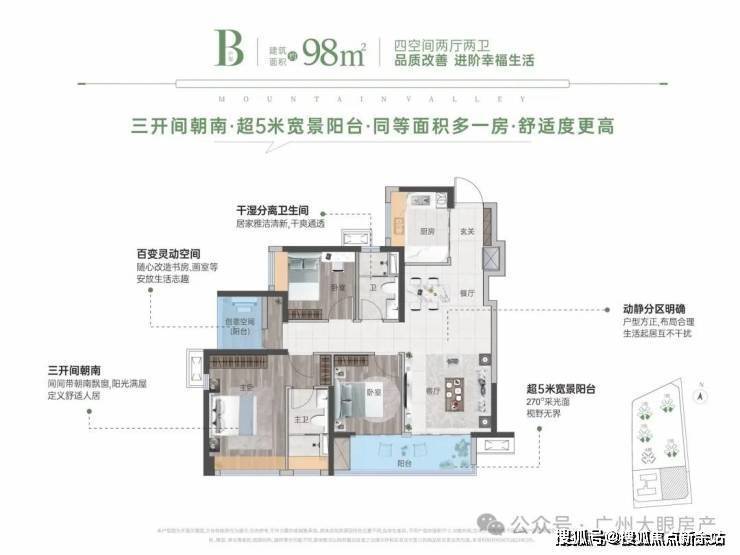 区域内唯一97㎡4房户型,精英阶层置业首选