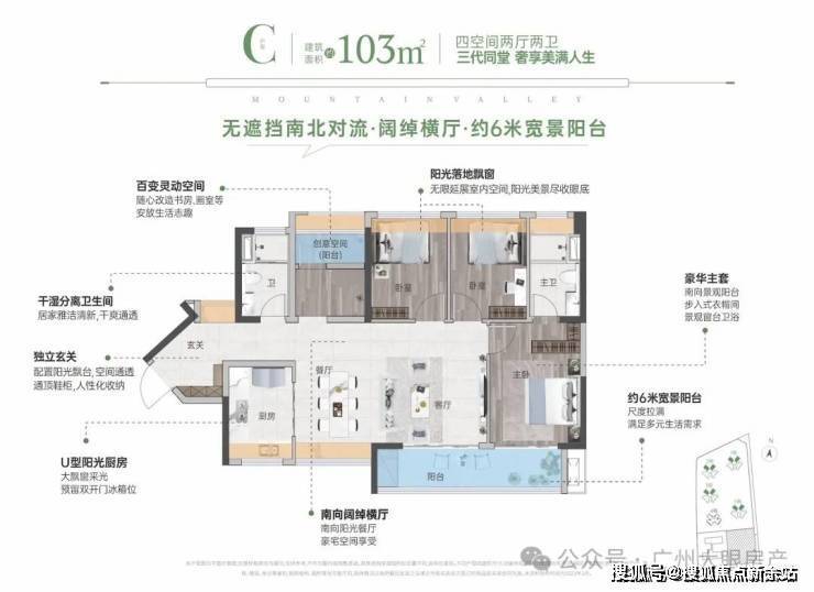 103㎡ 4房2厅2卫,南北通透,4房带主套,灵动户型分寸必用