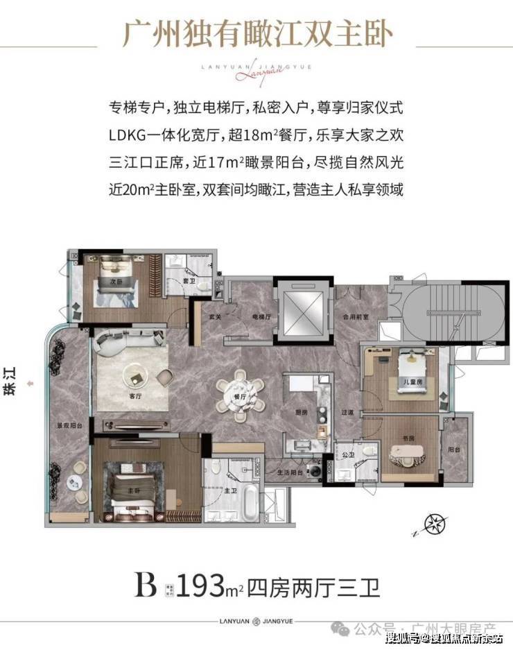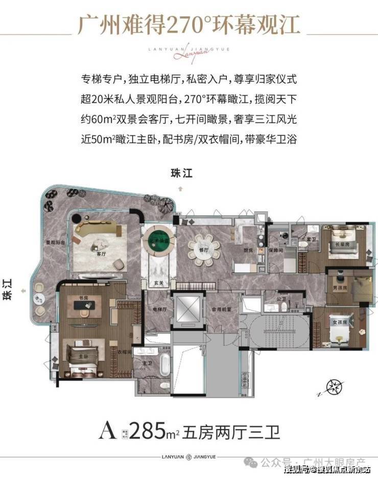 4,主打193/285平豪宅户型,所有户型均为专梯入户+江景单位,没有辜负白鹅潭顶级江景。