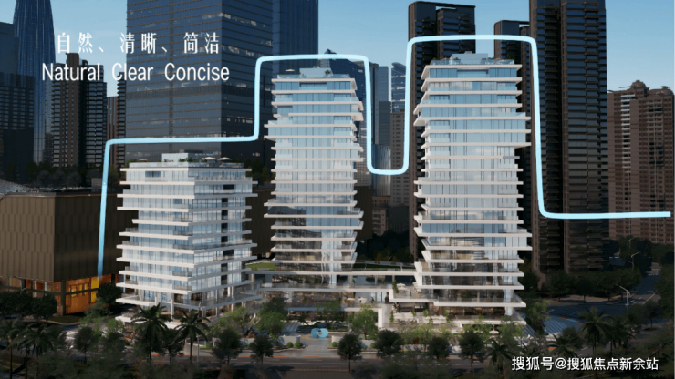 作为城市封面作品,鹅潭1号以国际化视野对话世界审美。创新性采用“折叠”模具设计,搭配错台式建筑体态,让建筑外立面挣脱刻板印象,迸发出蓬勃的动感与活力。每一处线条的起伏、每一层空间的错落,自然、清晰、简洁如雕塑,如同层叠的梯田,赋予外立面雕塑般的动感韵律。