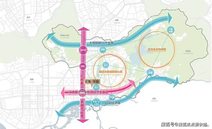 双枢纽:罗湖口岸跨境枢纽、罗湖北站(建设中)高铁枢纽
