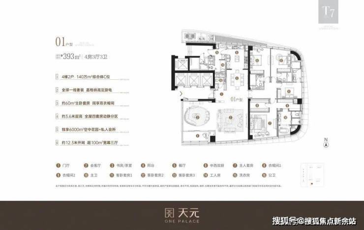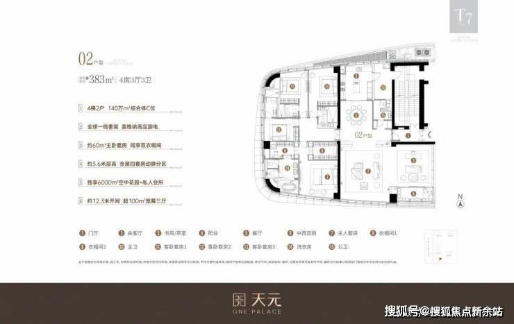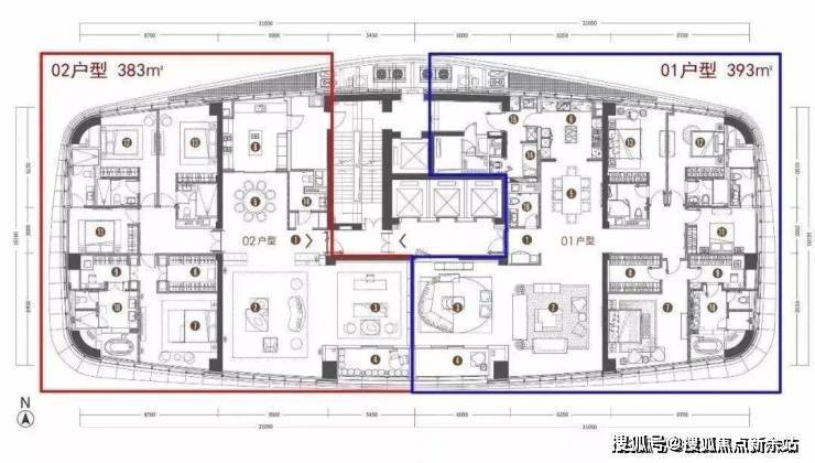 户型建面格局核心配置01户型383㎡4房3厅6卫南北通透+80㎡横厅+独立家政通道02户型393㎡5房3厅6卫中西双厨+双主卧套间+全景落地窗