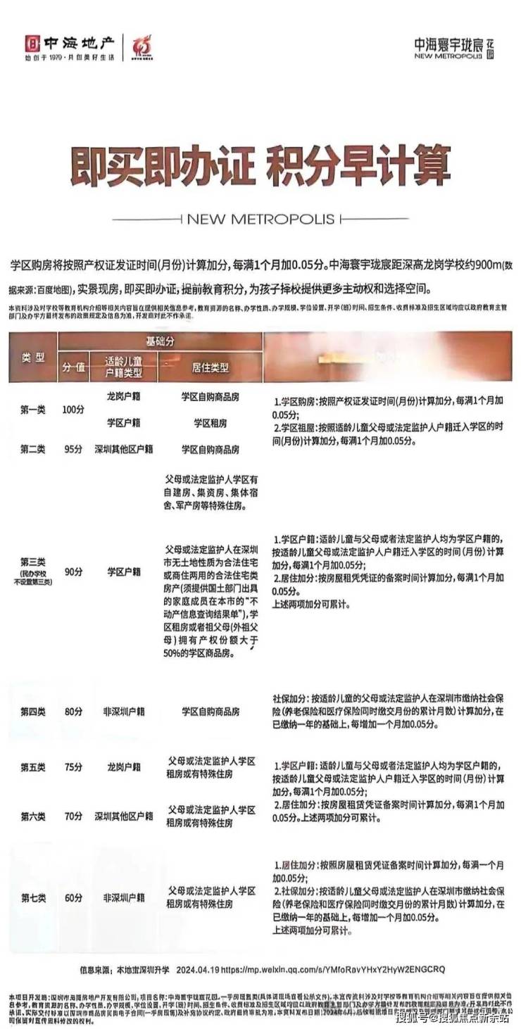 深圳高级中学龙岗学校:该校于2022年9月开设办学,是由龙岗区人民政府与深圳高级中学(集团)合作办学的一所九年制公办学校,规划有36个教学班(小学24班,初中12班),可以提供1800个学位,距离中海寰宇珑宸约900米,该校在2023年最新的录取积分,小学是90.25分,初中部是68.45分,小学学位如果深户有商品房,基本稳打稳是可以就读的。