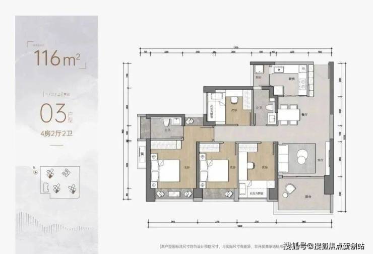 4房则是116平