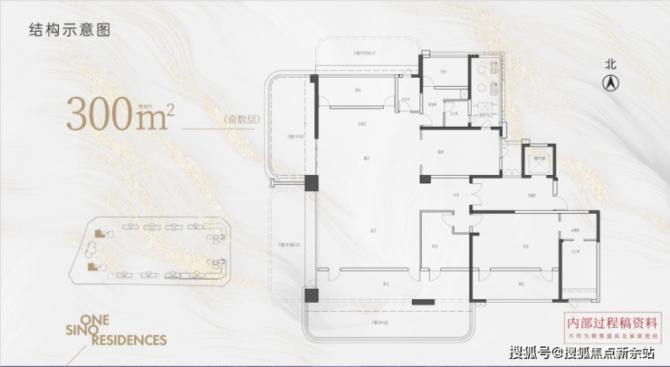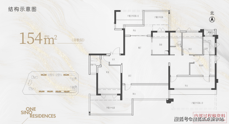 据现场销售介绍,项目主推建面约124-300㎡四至五房户型,主力户型为154㎡,户户朝南,使用率均超过100%。