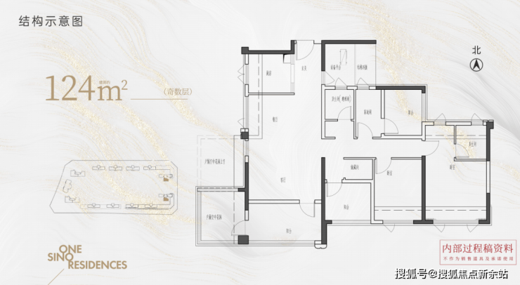 最小户型为建面约124,其中124㎡户型仅有一个阳台,也是唯一一个只配置单个阳台的户型。