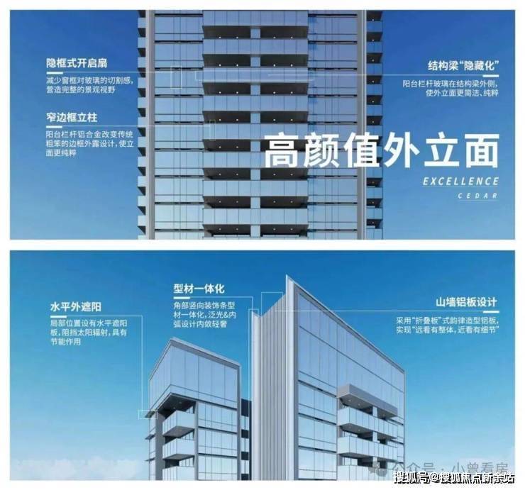 以写字楼和高级住宅美学工艺,锻造铝板幕墙+LOW-E玻璃外立面,超纤细边框设计,展现极简前沿风格。