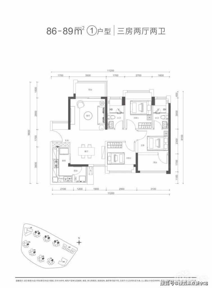 项目新增在售户型,[86-89①户型]86.0平米,3室2厅2卫,西北、北、东北朝向,304万/套;[76-80m²户型]77.0平米,3室2厅2卫,北朝向,270万/套;[86-89②户型]86.0平米,3室2厅2卫,北朝向,304万/套;[115m²户型]115.0平米,4室2厅2卫,北朝向,410万/套。
