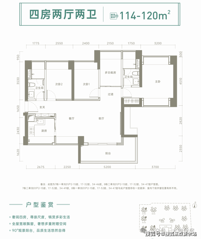 项目主推产品为建面约80-131㎡全南向精装3-4房住宅,提供全功能玄关、大开间阳台。户型可选范围较大可以满足刚需上车,改善换新等多类型家庭需求。