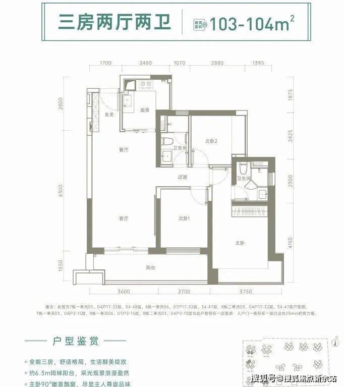 社区:超5万㎡城市示范园林,一环、一界面五组团、15大园林场景双重布局,约240m超尺度围合式大园林,打造生态呼吸型社区。
