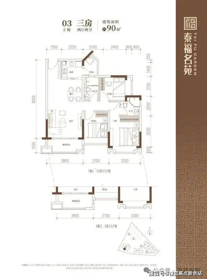 90-102㎡的3房2厅2卫户型。这几个户型都是在主人房多设计一个卫生间,私密性更强,也让家人间的生活更加方便。
