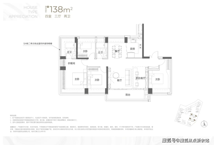 建面约138㎡4房2卫