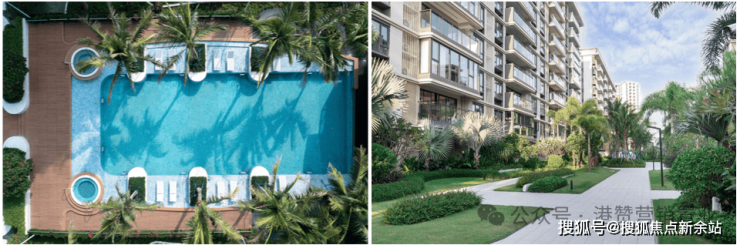 小区内自带园林泳池,树影婆娑下全家享游,日光浴随时走起,度假氛围感拉满