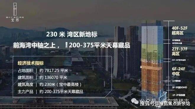 华侨城宝辰总高230米,为宝中最高楼;项目52层,分为中区、高区、超高区,6层起卖,11、39F为避难层,25-26F为空中会所,28F为空中大堂。除了空中大堂项目还有地下入库大堂+首层大堂,一共三重大堂。