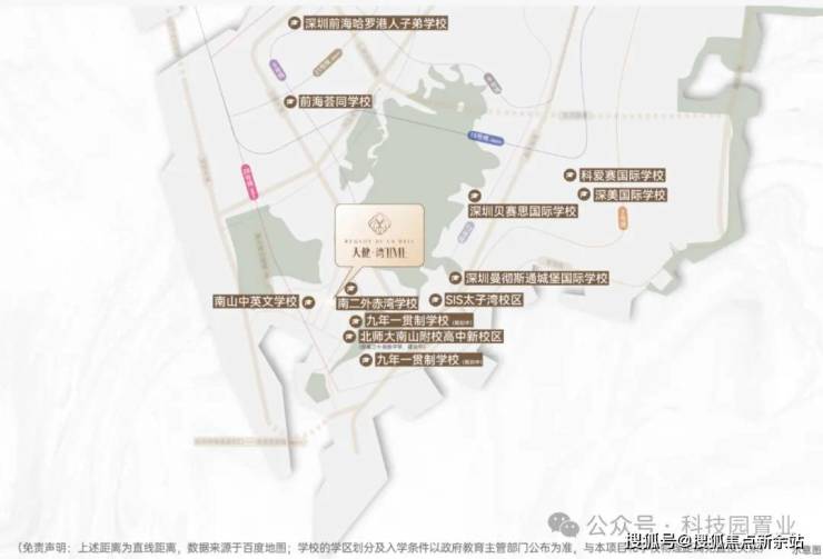 (免责声明:上述距离为直线距离,数据来源于百度地图;学校的学区划分及入学条件以政府教育主管部门公布为准,与本项目和学校物理距离无直接关系)