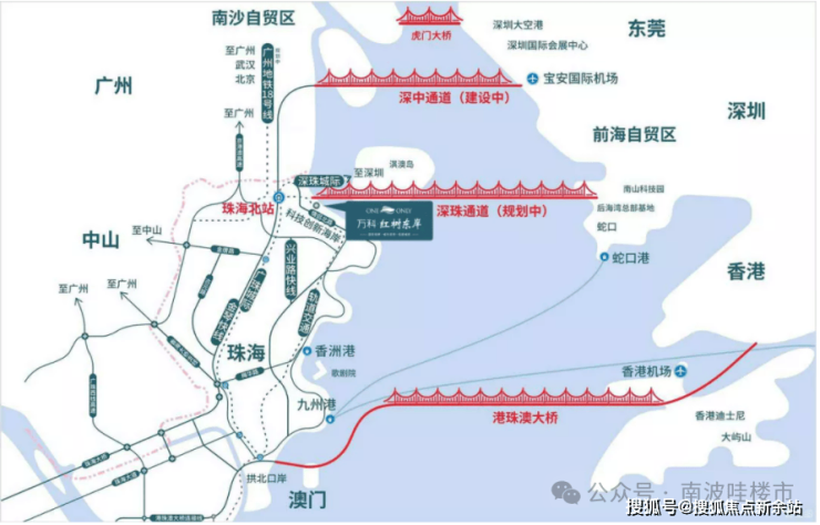 3通道:深中通道(建设中,预计2024年建成通车)、深珠通道(规划中)及港珠澳大桥(已通车)。据媒体报道,深珠通道通车后,唐家到深圳前海只需30分钟。