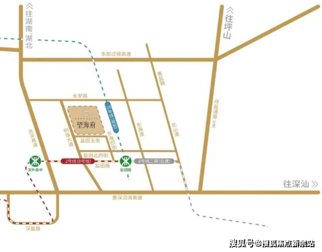 主脉路网:惠深沿海高速、盐排高速、盐坝高速,畅达各大中心区;武深高速、东部过境高速、坪盐通道(在建中)等路网环伺,通达全城。