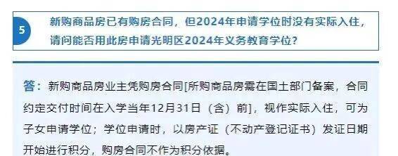 购买房产未入伙:新购商品房业主凭购房合同【所购商品房需在国土部门备案,合同约定交付时间在入学当年12月31日(含)前】,视作实际入住,可为子女申请学位;