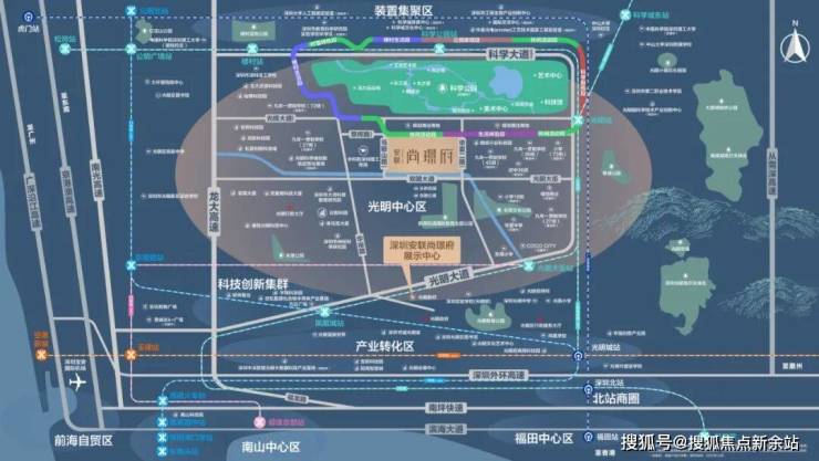 以“科学+城市+产业”为发展规划,光明科学城的空间格局划定“一心两区,绿环萦绕”,成就置业主场C位。