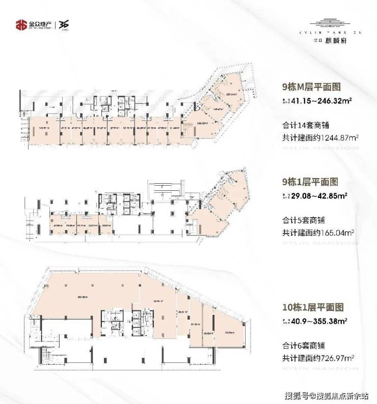 9栋M层为14套商铺,共计1244.87 ㎡;其中01-02-03铺为挑高铺; 整体为2层铺;