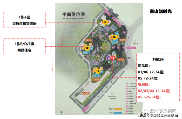 项目是一个以商品房为主的小区,共5栋楼,其中1A是自持型租赁住房,B/D/E是商品房;安居所在的楼栋是1C座,是安居房和商品房混合楼栋。