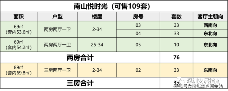 可售共计109套,69㎡两房76套,89㎡三房33套。