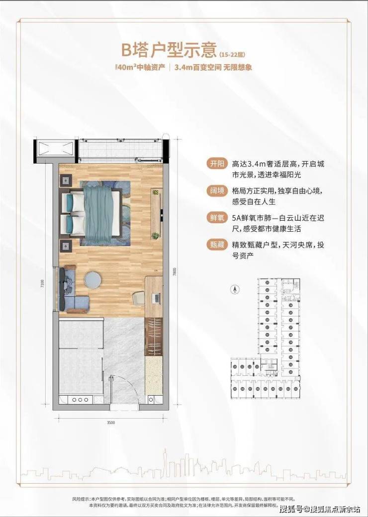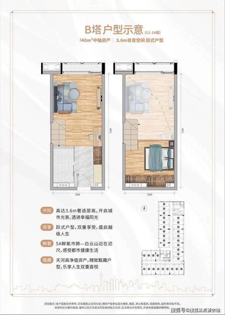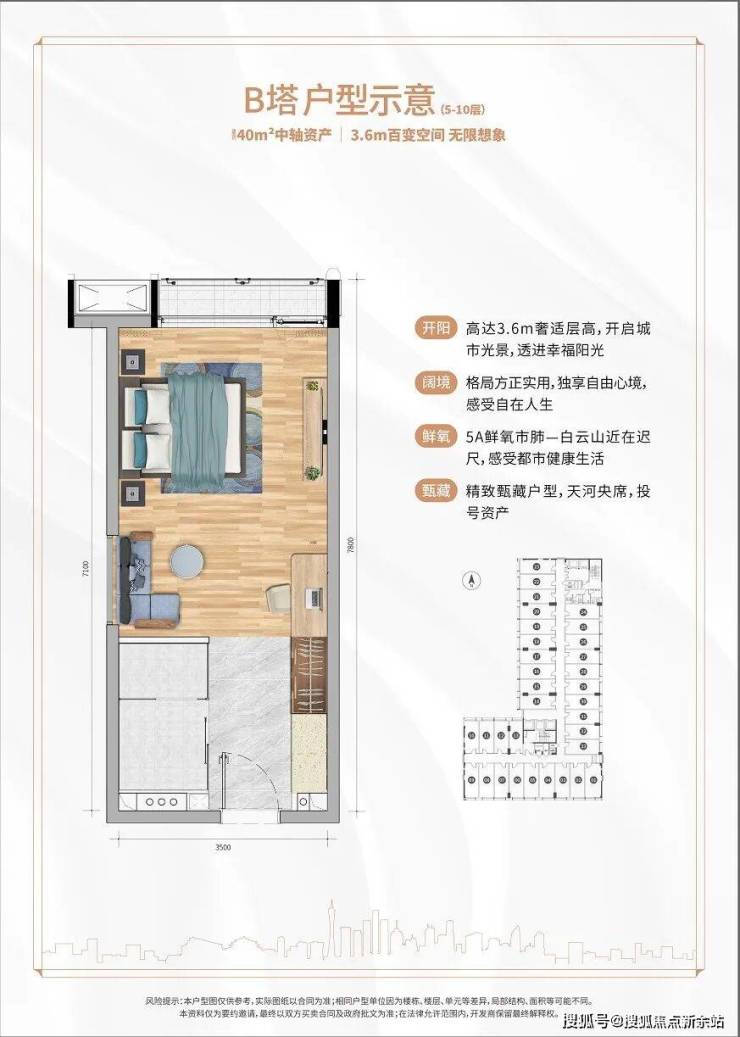 💎观云大厦:推售建筑面积约为37-41㎡酒店行政公馆、37-41㎡中轴精品空间,合理规划卧室、厨房、卫生间,3.4-3.6米高超高空间,重新解构空间的秘密,满足自用、办公、投资多重需求;创造独一无二的能量补给站,为城市奋斗者缔造一个理想的乌托邦。