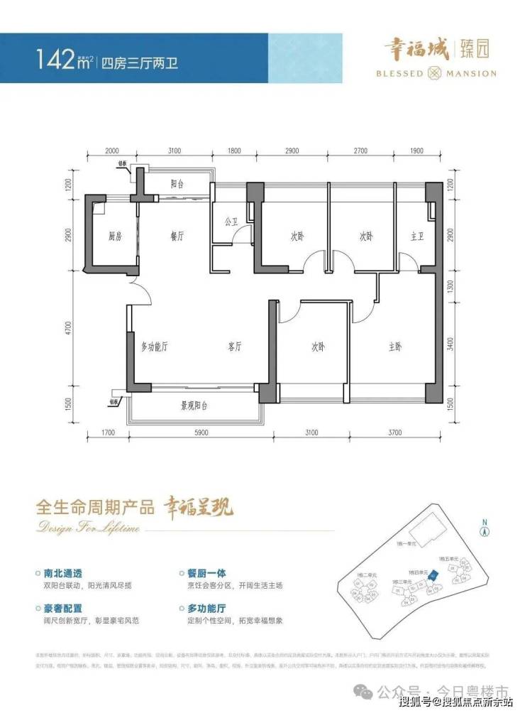 5.9米横厅+南北双阳台,三段式分离卫浴,得房率87.1%,东南向
