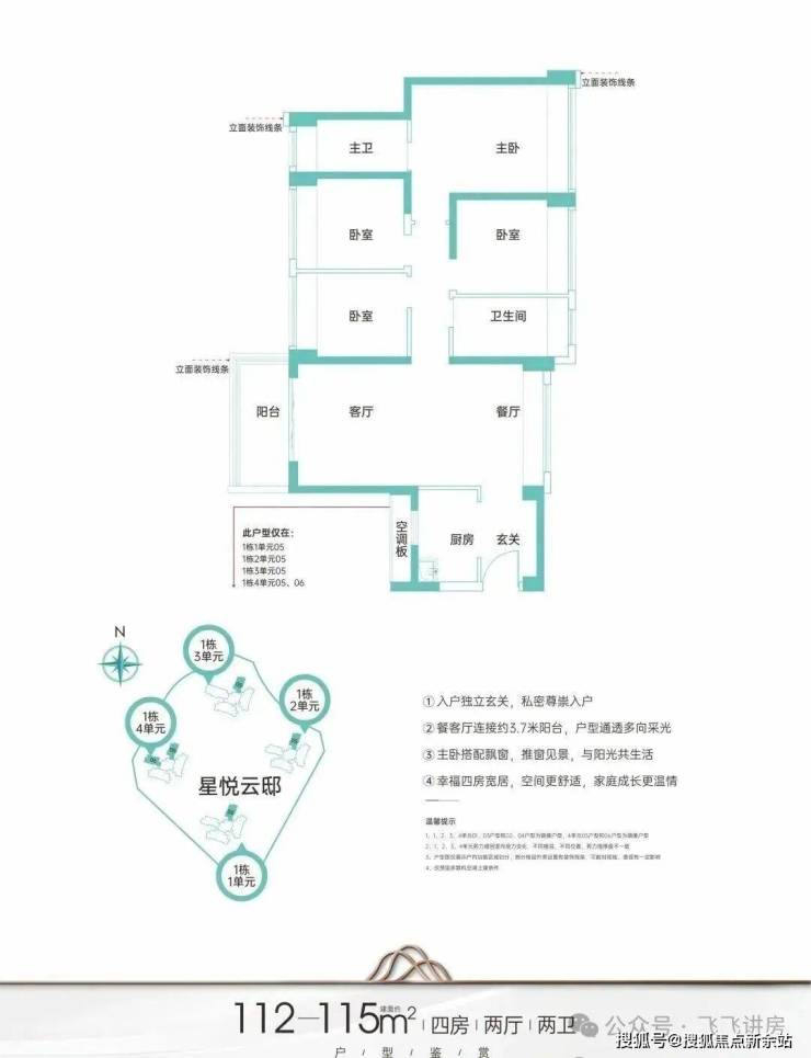 星河星悦云邸,总占地面积约1.97万㎡,总建筑面积约15.4万㎡,计容建筑面积约11.7万㎡,容积率5.9,绿化率40.07%,共由1栋4个单元总高42-48F的住宅组成,其中1栋1单元住宅48F,1栋2单元住宅42F,1栋3单元住宅43F,1栋4单元住宅47F。总规划1007户,其中可售商品房879套,全部3梯6户设计,停车位1000个(车位比1:0.99)
