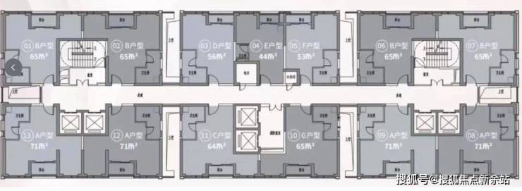 【舒适梯户】44-71㎡舒居1-2房,6梯13户,便捷通达