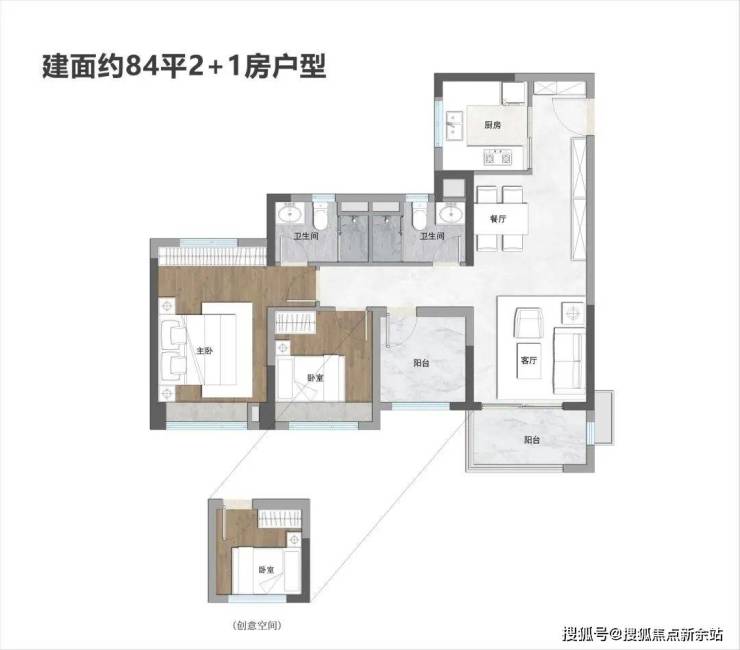 比如项目建面约84平三房的户型,就令小编非常惊喜。