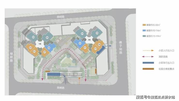 【产品户型】:建筑面积约85-88m²三房两卫、建筑面积约110-114m²四房两卫、建筑面积约113-119㎡四房两卫