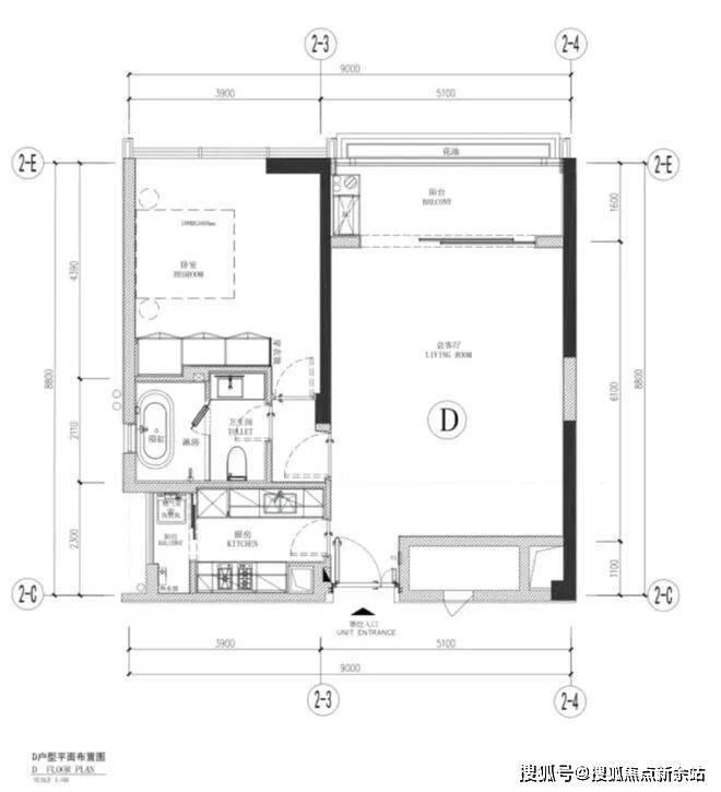 D户型(90㎡1-2房一厅)