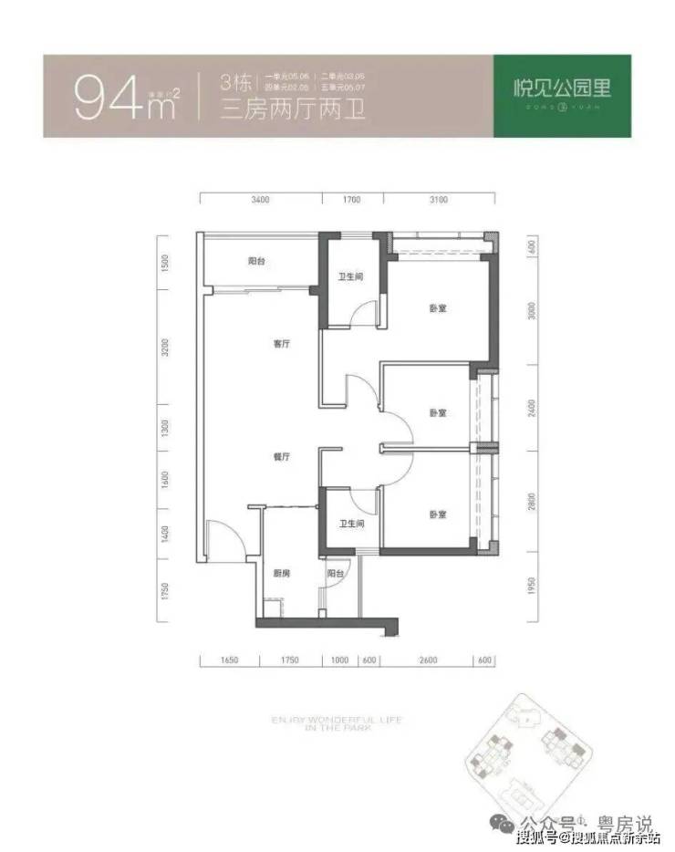 94㎡的3房2厅2卫,折后总价329-357万/套,单价3.5-3.79万/㎡。