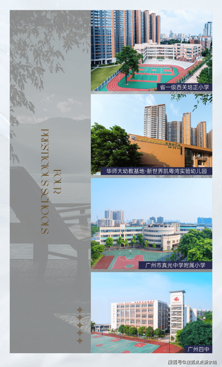 在家门口,就有2-16岁的长线稳定的美善教育体系,囊括凯粤湾实验幼儿园、广州四中(公办)、西关培正小学(公办)、真光中学附属小学(公办)等优质学校。