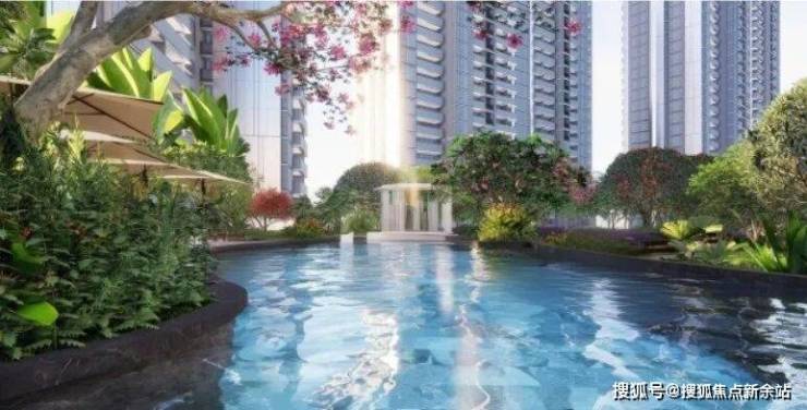 园林请的是新加坡团队设计,度假风满满,约4000㎡的空间里泳池、阳光草坪、休闲吧台、童趣乐园、康养中心全部配齐。