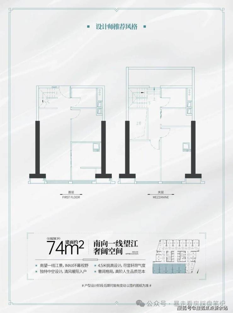 👉建面约74㎡南向一线望江LOFT(可明火)
