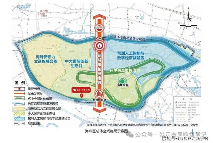 为指引全区未来国土空间发展方向,实现高质量发展和高标准建设,海珠区编制了《广州市海珠区国土空间总体规划(2021-2035年)》,目前已形成规划草案。一轴引领、两环带动、三区支撑”的城市空间格局,构建更具竞争力的数字创新城区。