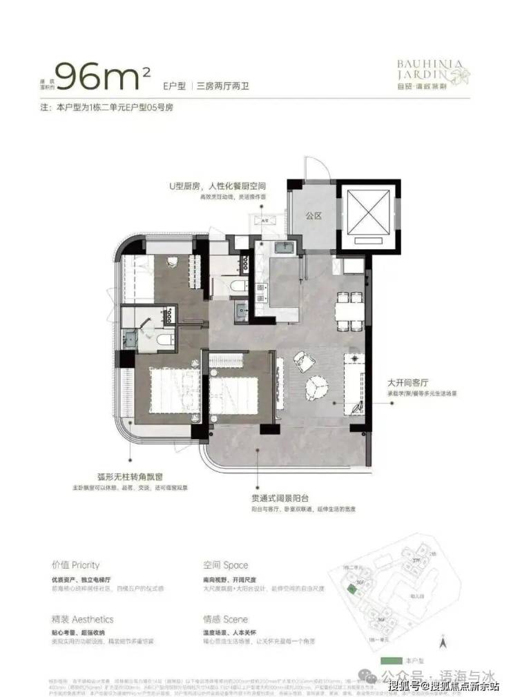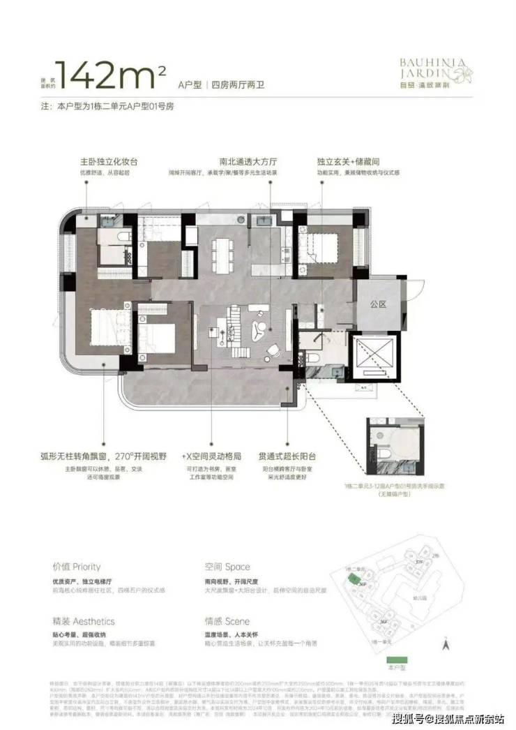 270°弧形无柱大尺度飘窗、大宽厅、大阳台,带来更多使用空间。