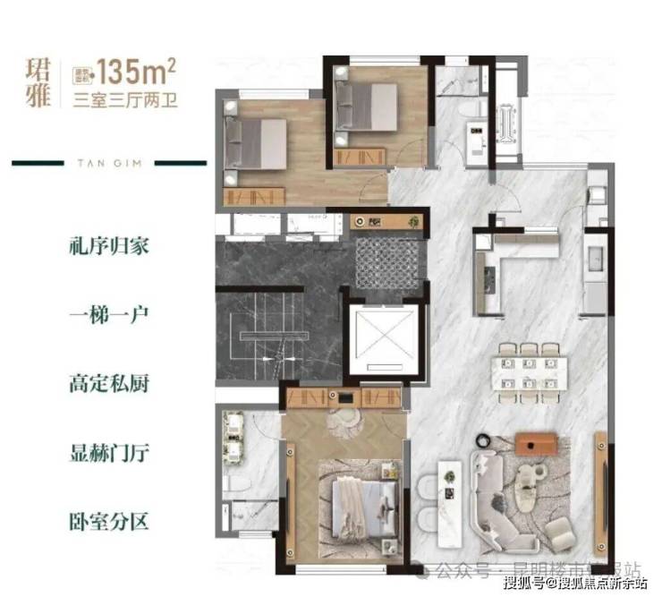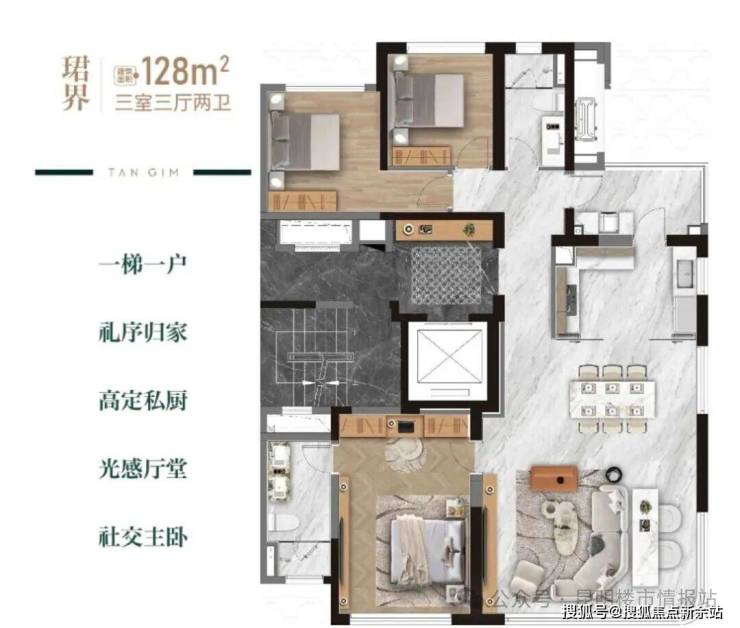 端户产品,我们称之为“功能主义杰作”。它不一味求大,而是通过 “一梯一户的私密、独立花厅的灵动、四房功能的齐全、独立储藏间的实用” 四大核心价值,在有限面积内实现了功能最大化与生活场景的极致丰富,专为注重效率、品质与成长性的智慧家庭打造。