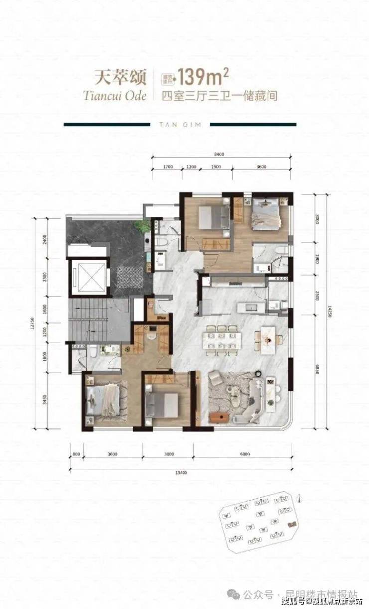 建筑面积:约122-143㎡(122/128/135/139/143㎡)