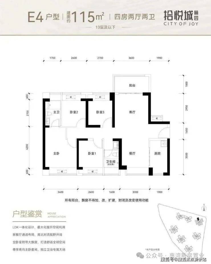 115平~118平全明采光户型,四卧室、厨房、两卫、客餐厅等均设计超大采光面,带来明亮通透的舒适居感,客餐厅以横厅布局,让家庭居住空间的视野范围和活动区域扩大,加强家庭成员之间的情感交流;不论是三代同堂的天伦之乐,亦或是四口之家的温馨时刻,皆能一步到位。