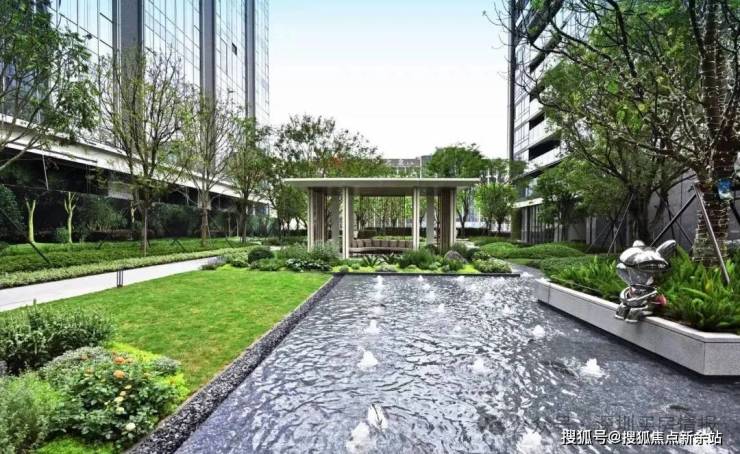园林——采用立体抬高式,约3.8万㎡,带400m跑道,配置泳池和竹木地面放松休闲区,在小区内营造轻松的氛围。