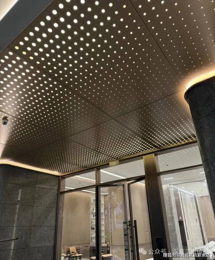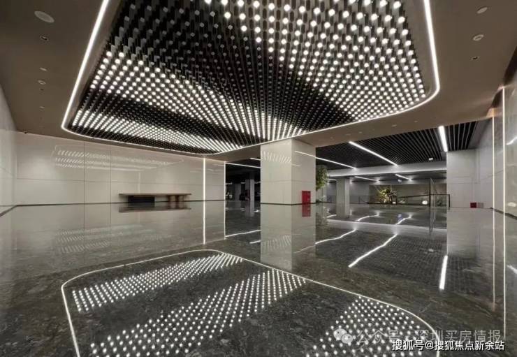大堂——社区采用集中提升大堂,高16.5m,宽27m,星空顶,一楼大堂还没做好。三楼各单元门的入户大堂已经基本成型,这个归家的仪式感还是拉很满的。
